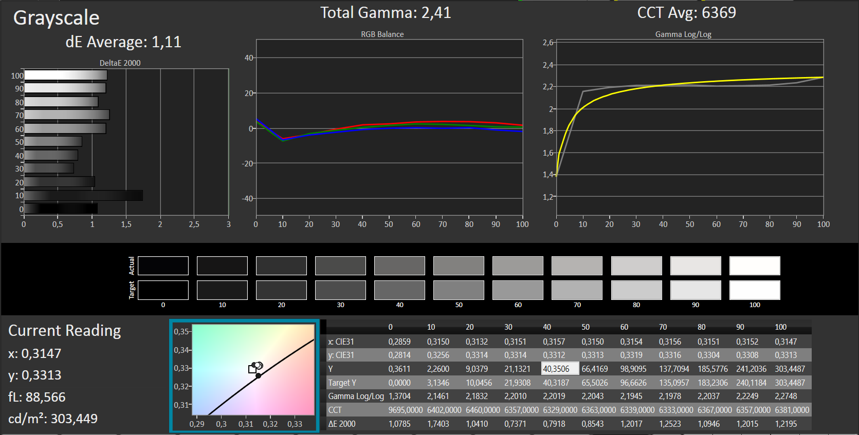 ΔE Greyscale Calman: 7.7 | ∀{0.09-98 Ø5}