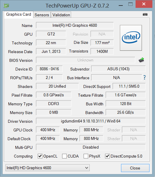 Es kommen zwei GPUs in dem Asus-Rechner zum Einsatz: Intels HD Graphics 4600 GPU und Nvidias GeForce GT 750M Grafikkern. Der Grafikchip von Intel wird in der Regel im Alltag und im Akkubetrieb genutzt. Der GeForce Kern kommt immer dann zum Zug, wenn viel Grafikleistung gefragt ist - beispielsweise zur Darstellung von 3D-Spielen. Beide Chips unterstützen DirectX 11.1. Der GT-750M-Grafikkern gehört der oberen Mittelklasse an. Er arbeitet mit einer Basisgeschwindigkeit von 967 MHz. Die Geschwindigkeit kann mittels Turbo bis auf 1.163 MHz erhöht werden. Diesen Turbo nutzt das N550JV auch.