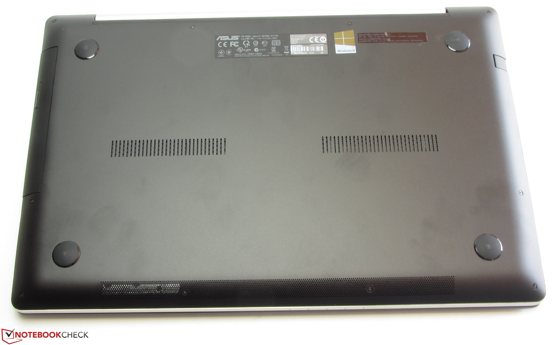Auf eine Wartungsklappe hat Asus beim N550JV verzichtet. Um an die Hardware zu gelangen, muss die Unterseite der Base Unit entfernt werden. Dies stellt kein allzu kompliziertes Unterfangen dar. Nachdem alle Schrauben (Torx) entfernt wurden, kann die Unterseite gelöst werden. Dabei wird an der Vorderseite der Base Unit begonnen. Vorsicht ist geboten, da die Unterseite zusätzlich von ein paar Kunststoffhaken gehalten wird. An der Hinterseite der Base Unit sind etwas Fingerspitzengefühl und Geduld gefragt. Hier befinden sich die Auslassöffnungen für die Kühler.