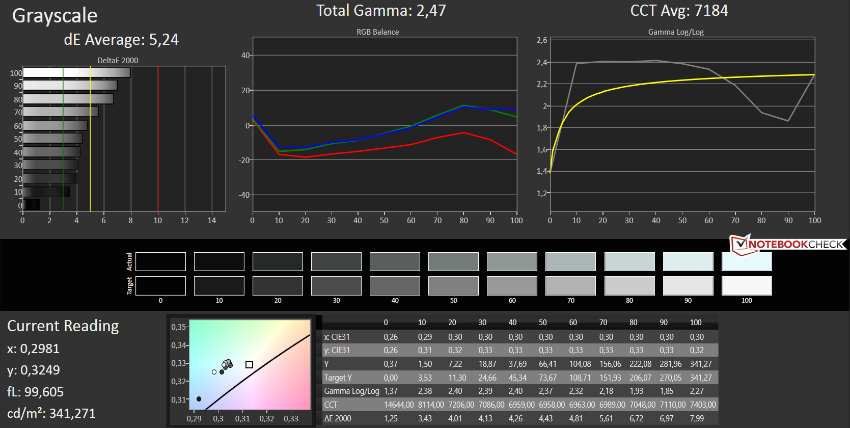 ΔE Greyscale Calman: 5.24 | ∀{0.09-98 Ø5}