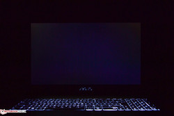 Es arbeitet mit einer durchschnittlichen Helligkeit von 304 cd/m² (336 cd/m² maximal) - ein sehr guter Wert, der deutlich über dem Durchschnitt in dieser Klasse liegt und auch im Akkubetrieb (336 cd/m² maximal) gehalten wird. Screen Bleeding bei einem völlig schwarzen Bild (RGB 0,0,0) ist nur in der Dunkelkammer, dafür aber bereits bei Stufe 6 (144 cd/m²) mit dem bloßen Auge wahrzunehmen, siehe Bild. Dies steigerte sich bei weiterer Helligkeit. Clouding (weiße Lichthöfe) sind sehr leicht vorhanden und zwar in der linken & rechten oberen Ecke sowie unten in der Mitte. Die Tataturbeleuchtung blieb aktiviert um einen Referenzwert der Screen-Bleeding-Intensität zu vermitteln. Bereits bei geringer abendlicher Zimmerbeleuchtung, ist selbst bei schwarzen Bild (RGB 0, 0, 0) weder Screen Bleeding, noch Clouding wahrzunehmen.
