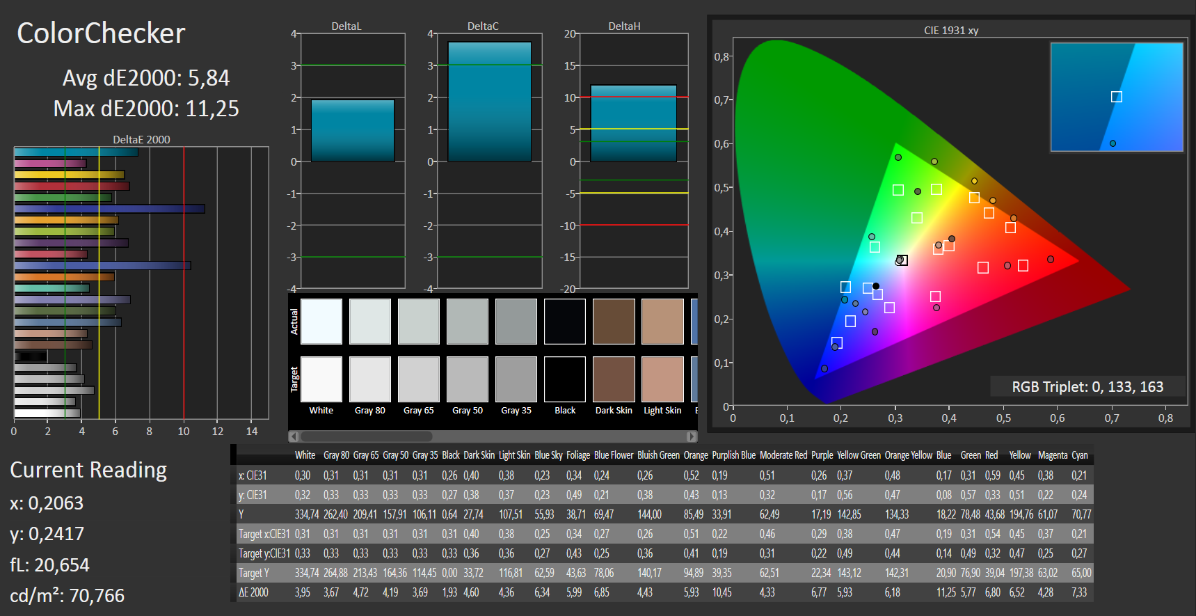 ΔE ColorChecker Calman: 5.84 | ∀{0.5-29.43 Ø4.78}
