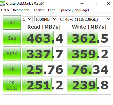 Asus setzt bei der Anschlussauswahl auf Altbekanntes. Einzige Neuerung, die Einzug gehalten hat, ist ein USB-3.1-Typ-C-Anschluss. Dafür musste allerdings ein USB 3.0 Port weichen. Somit gibt es beim aktuellen Modell nur noch 3 USB-3.0-Ports. Der verbaute Kartenleser unterstützt die Standards SD, SDHC und SDXC. Die Performance des eingebauten Speicherkartenlesers haben wir mit unserer Toshiba-SDXC-Referenz-Karte getestet (Exceria Pro SDXC 64 GB UHS-II) und einen durchschnittlichen Wert von 61,1 MB/s beim Kopieren von JPG-Dateien erreicht.