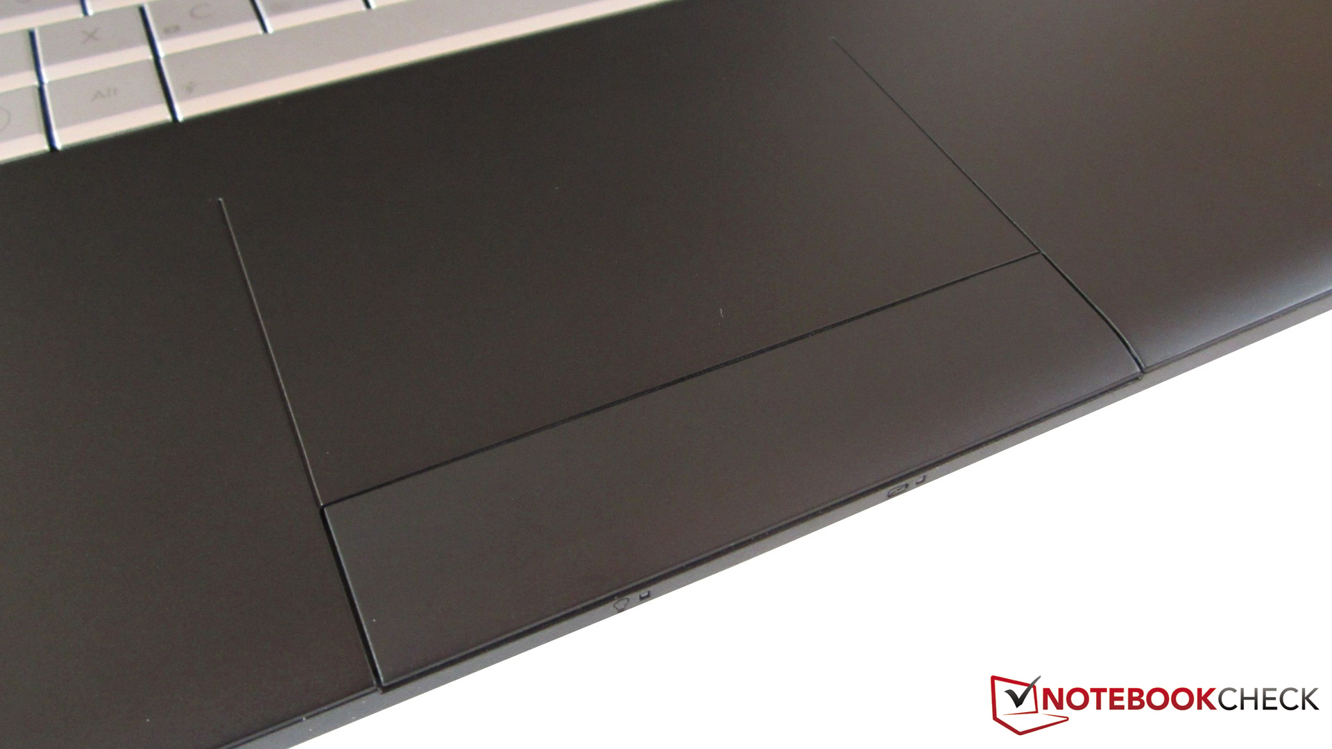 Das Touchpad ergattert eine bessere Wertung. Auf der positiven Seite hätten wir nicht nur die üppige Dimensionierung (108x60 Millimeter), sondern auch die angenehme Gummi-Oberfläche, die eine passable Gleitfähigkeit gewährleistet. Weitere Pluspunkte kann das Touchpad mit seinen unterstützten Gesten sammeln, die, wie üblich, mit zwei oder drei Fingern aktiviert werden und die Arbeit deutlich komfortabler gestalten. Eine horizontale und vertikale Scrollleiste im Randbereich ist natürlich auch vorhanden.