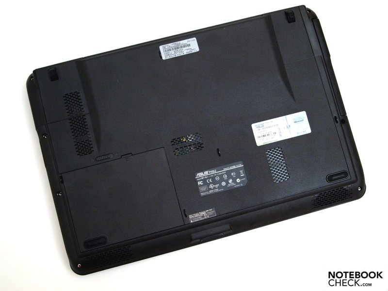 Das Akkufach erhielt eine eigene, getrennte Abdeckung mit Standfuß. Auf diese Art und Weise kann der Laptop ohne Akku betrieben werden ohne dass eine Öffnung an der Unterseite entsteht oder gar das Gerät wackelt. Leider sitzt die Abdeckung nicht vollständig fest und kann hin und her bewegt werden. Außer der Akkuabdeckung findet man keine Wartungsöffnungen an der Unterseite, womit beispielsweise ein Hauptspeicherupgrade durch den Benutzer erschwert wird.