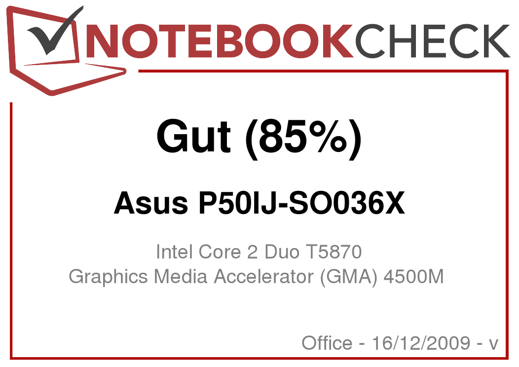 In Anbetracht des Preises ist Asus ein durchaus brauchbarer Office-Laptop gelungen. Das Haupteinsatzgebiet liegt dabei bei Office- und Internetanwendungen ohne besondere Ansprüche an Grafik. Wer auf Sicherheitsfeatures wie Fingerprintleser, TPM verzichten kann und mit der etwas eingeschränkten Schnittstellenausstattung leben kann, findet im P50IJ sicherlich einen zuverlässigen Begleiter.