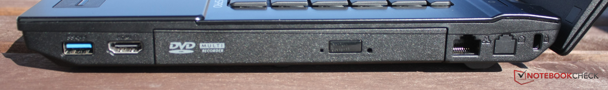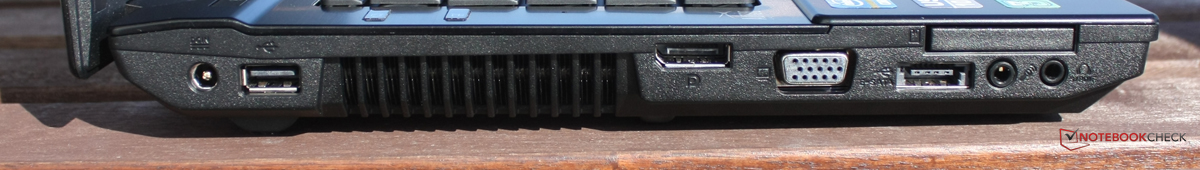 Auch bei den Anschlüssen gleicht unser Testgerät dem Asus B43E, bis auf die kleine Ausnahme, dass bei unserem Gerät der Modem-Anschluss nicht eingebaut ist. Die Ähnlichkeit bedeutet gleichzeitig, dass das Asus Pro B43V eine für ein 14-Zoll-Gerät erstaunliche Vielfalt an Anschlüssen mitbringt: Dank VGA, HDMI und Display-Port sollte sich so gut wie jeder Monitor mit dem Testgerät verstehen. Ein 34mm-Express-Card-Slot ist an Bord, ebenso wie eSATA und ein 3,5-Millimeter-Audioausgang mit S/PDIF-Unterstützung. An der Unterseite findet sich der Docking-Station-Port.
