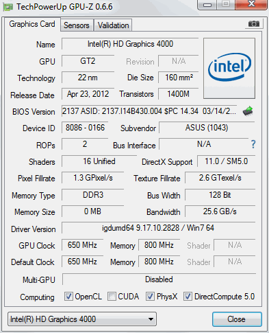 Zusammen mit dem Prozessor befindet sich auch die Intel HD Graphics 4000 auf demselben Chip, die vom System per Nivida Optimus immer dann aktiviert wird, wenn nicht so viel Grafikkraft benötigt wird. Dadurch wird ein stromsparender Betrieb ermöglicht. Meist erledigt das System diese Aufgabe zuverlässig von alleine, der Nutzer kann aber auch eingreifen und entscheiden, welche Grafikkarte bei welchem Programm zum Einsatz kommt.