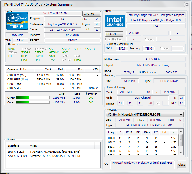 Intels Core i5-3210M ist ein Allrounder, der sich sowohl im Multimedia-Notebook, Einsteiger-Gaming-Book als auch in einem Office-Laptop gut macht. Basierend auf der aktuellen Ivy-Bridge-Architektur und ausgestattet mit zwei Rechenkernen, taktet der Prozessor mit 2,5 GHz. Dieser Takt kann vom System per Turbo-Funktion auf 2,9 GHz erhöht werden, sobald mehrere Threads bearbeitet werden oder sogar auf 3,1 GHz, wenn nur ein Thread zu bearbeiten ist. Außerdem befindet sich im Prozessor ein Transistor-Block, der sich nur um das Encoding und Decoding von Videomaterial kümmert und so deutliche Geschwindigkeitsvorteile herausholt, ohne den eigentlichen Prozessor zu belasten. Intel nennt diese Technologie "QuickSync".