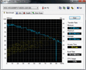 Die 5.400-U/Min-Festplatte (320 GByte) erreicht recht gute Datendurchsätze. Diese werden mit 70 MByte/s im Sequential Read ausgelesen (HD Tune). Ein überdurchschnittlicher Wert für eine 2.5-Zoll-Notebook-HDD mit nur 5.400 U/Min. Die Burst Rate (Auslesen des HDD Cache in einer Sekunde) fällt aber ziemlich niedrig aus: 70 MByte/s. Dies führt wahrscheinlich zu dem dann doch niedrigen HDD-Score von 3.143 Punkten (PCMark Vantage Sub-Score).