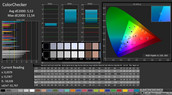Im Auslieferungszustand zeigt der Bildschirm eine DeltaE-2000-Farbabweichung von 5,53. Anzustreben wäre ein Wert kleiner 3. Zudem verfügt das Display über einen leichten Blaustich. Mittels Kalibrierung kann hier für eine deutliche Besserung gesorgt werden. So sinkt die Farbabweichung auf 1,86 und bewegt sich damit voll im Soll. Zudem verschwindet der Blaustich und die Graustufen werden ausgewogener dargestellt. Die Farbräume AdobeRGB und sRGB kann das Display nicht darstellen. Hier liegen die Abdeckungsraten bei 58 Prozent (AdobeRGB) bzw. 90 Prozent (sRGB).