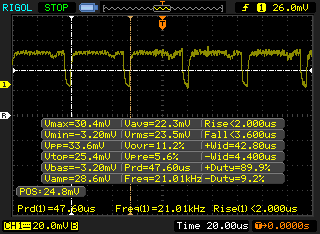 | PWM Frequency (Hz) | 21010 ? | 21000 ? | 25910 ? | 20000 ? | 20000 ? | ||