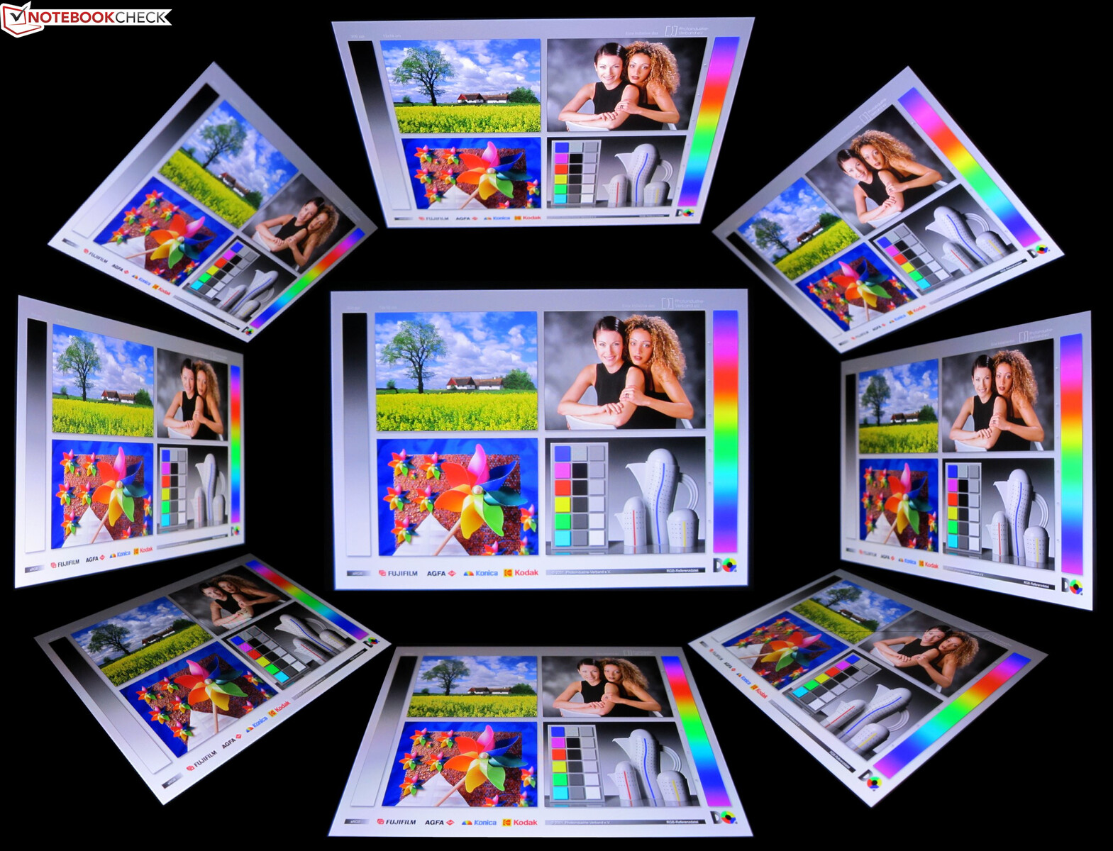 | Helligkeit Bildmitte (cd/m²) | 1010 | 1061 5% | 860 -15% | 811 -20% | 1128 12% | 642 -36% | 807 -20% |
