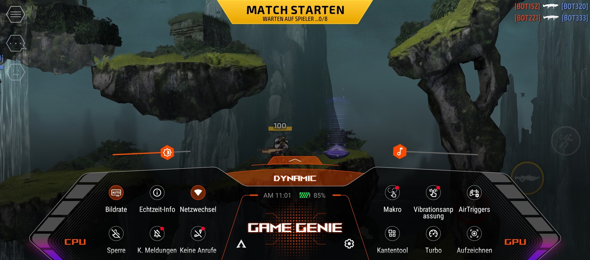 Neben praktischen Features wie einer Makro-Aufzeichnung, einem Nicht-Stören-Modus und einem FPS-Counter kann man mit Game Genie auch die AirTrigger konfigurieren. Dazu zieht man die L- und R-Symbole über die Steuerelemente im Spiel-UI wie beispielsweise die Waffen-Wechseln- oder Menü-Taste und kann diese dann direkt über die Ultraschalltasten bedienen. Für einige Spiele wie Call of Duty Mobile, Genshin Impact und PUBG Mobile und liefert Asus vordefinierte AirTrigger-Presets mit, so dass man sich das manuelle Belegen der Tasten sparen kann.