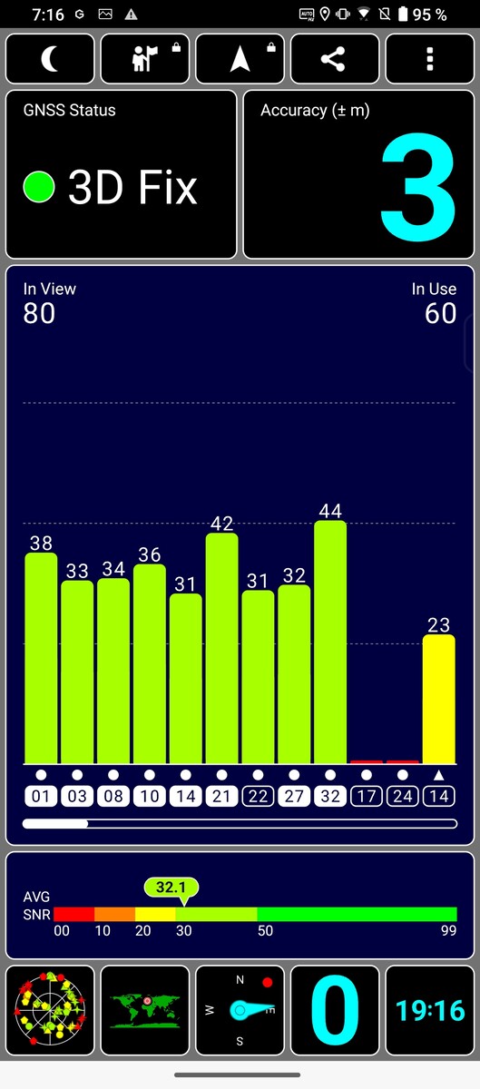 Zur Ortung nutzt das Asus-Handy die Satelliten-Navigationsdienste GPS (L1/L5), Glonass (L1), Galileo (E1/E5a), BeiDou (B1/B2a), QZSS (L1/L5) und NavIC (L5). Im Test gelingt dem Smartphone damit eine schnelle und bis auf 3 Meter genaue Positionsbestimmung.