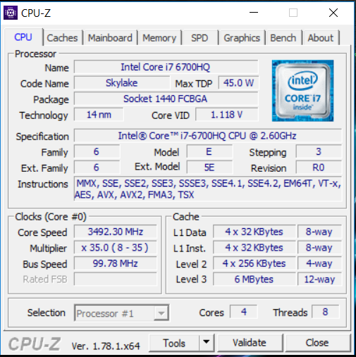 Vierkernprozessoren der Kaby-Lake-Generation werden erst im Jahre 2017 verfügbar sein. Daher setzt Asus mit dem verbauten Core i7-6700HQ noch auf ein Skylake Modell - wie viele andere Hersteller von Gaming-Notebooks auch. Auf technischer Seite unterscheiden sich Kaby Lake und Skylake praktisch nicht. Intel hat bei Kaby Lake primär Optimierungen vorgenommen. Mit einer TDP von 45 Watt zählt der Core i7-6700HQ nicht zu den sparsamen ULV-Prozessoren (TDP: 15 Watt). Die CPU arbeitet mit einer Basisgeschwindigkeit von 2,6 GHz. Per Turbo kann der Takt auf 3,1 GHz (vier Kerne), 3,3 GHz (zwei Kerne) bzw. 3,5 GHz (ein Kern) gesteigert werden. Der Turbo kommt im Netz- und im Akkubetrieb zum Einsatz.