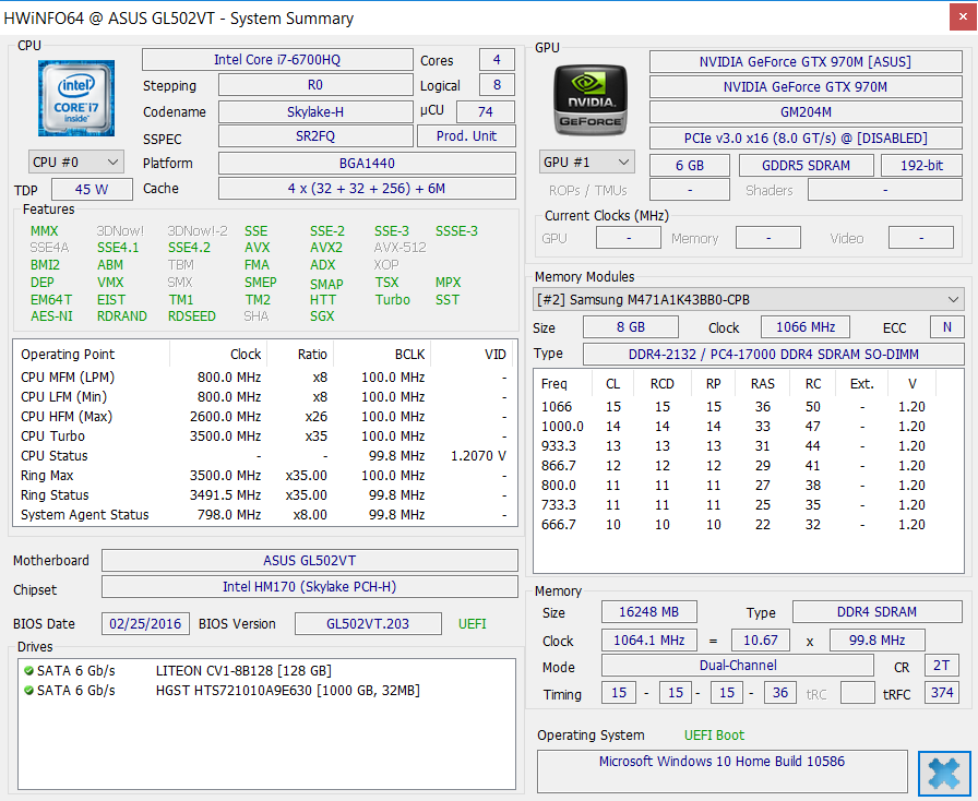 | Asus Strix GL502VT-DS74 GeForce GTX 970M, 6700HQ, Lite-On CV1-8B128 | Acer Predator 15 G9-592-7925 GeForce GTX 970M, 6700HQ, Samsung SSD PM871 MZNLN512HCJH | Aorus X5S v5 GeForce GTX 980M, 6700HQ, Samsung SM951 MZVPV256 m.2 | Asus ZenBook Pro UX501VW-DS71T GeForce GTX 960M, 6700HQ, Samsung SM951 MZVPV512HDGL m.2 PCI-e | MSI GS60-6QE4K16H21 GeForce GTX 970M, 6700HQ, Hynix HFS256G3MND | Asus GL552VW-DK725T GeForce GTX 960M, 6700HQ, Crucial MX200 M.2 CT250MX200SSD4 | |