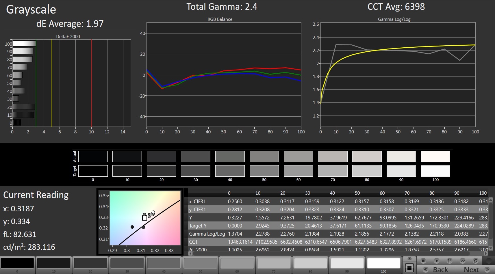 ΔE Greyscale Calman: 1.97 | ∀{0.09-98 Ø5}