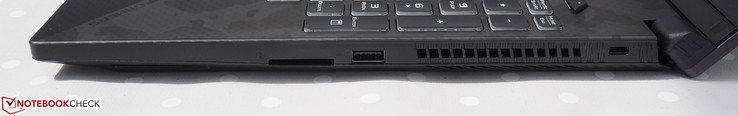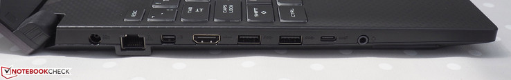 So modern das GL504 in vielerlei Hinsicht auch ist: Bei den Schnittstellen wäre noch Luft nach oben. Zwar unterstützen zwei der insgesamt vier USB-Ports das 3.1-Gen2-Protokoll, Thunderbolt 3 zur Nutzung von externen GPUs und weiterer Peripherie sucht man indes vergeblich. Die restlichen Anschlüsse orientieren sich am Gaming-Standard. Dazu zählen ein RJ45-Port, eine Audio-Buchse (Kopfhörer/Mikrofon), ein Cardreader und eine Öffnung für Kensington Locks. Desktop-Monitore lassen sich entweder per HDMI 2.0 oder Mini-DisplayPort 1.2 anstecken.