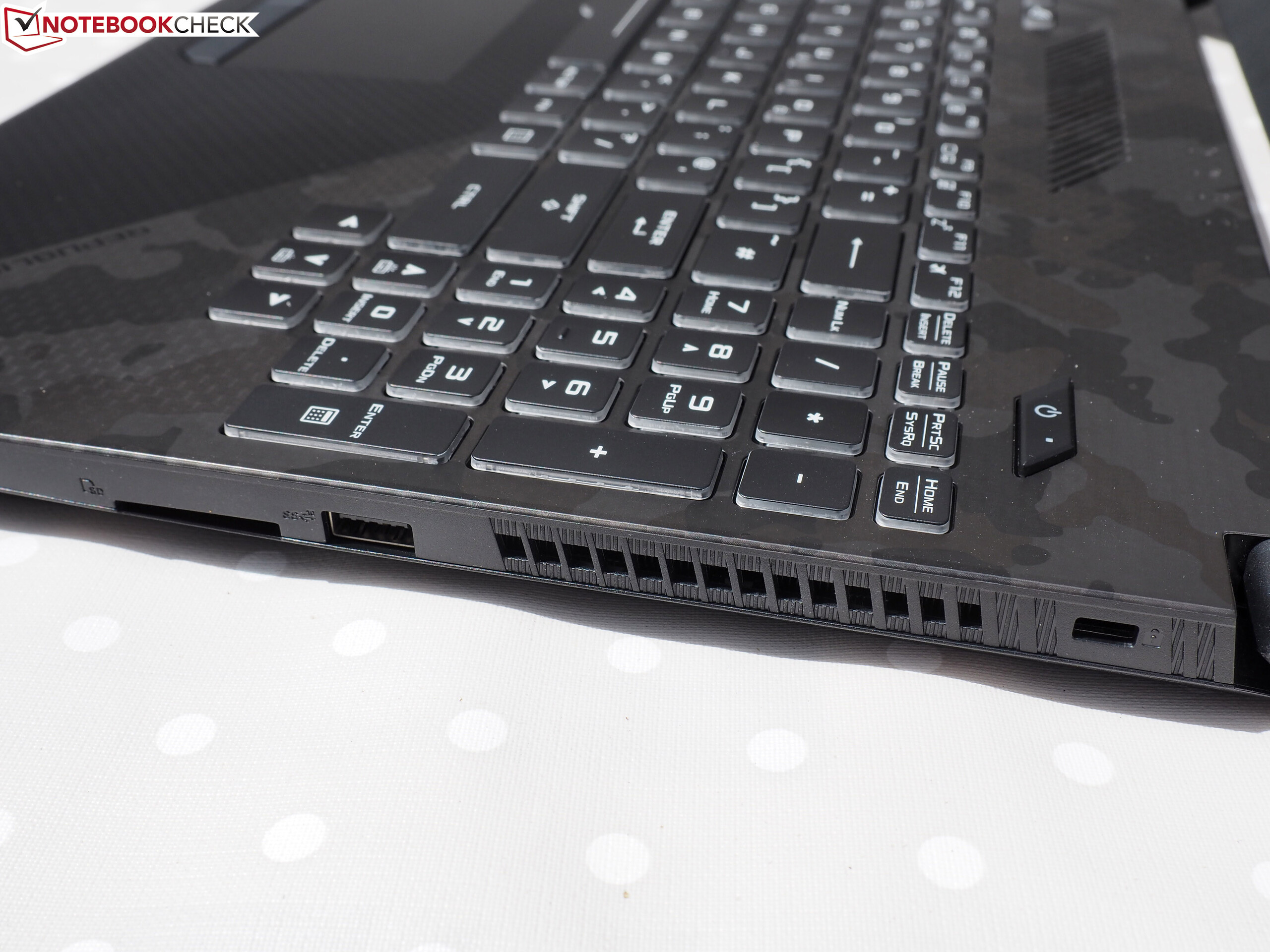 Respekt gebührt dem Hersteller auch für die praktischen Sondertasten, mit denen sich die Lautstärke regeln, das Mikrofon deaktivieren und das Gaming Center öffnen lassen. Da es sich bei unserem Testgerät um eine UK-Version handelte, können wir das (deutsche) Layout noch nicht abschließend beurteilen. Lob gibt es jedenfalls für die abgesetzten Richtungspfeile und das vergrößerte Enter. Lediglich die kombinierte Einfg/Entf-Taste ist dem Autor negativ aufgefallen. Trotz des eingeschränkten Platzangebots hat Asus einen dedizierten Nummernblock untergebracht, wenngleich dessen Tasten ziemlich schmal geraten sind.