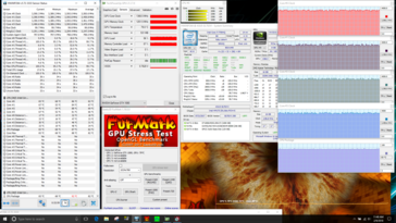 Wie schon erwähnt schwanken die Lüfterdrehzahlen der beiden 12-V-Lüfter des GL702VI bei hoher Last mit einer Periode von mehreren Minuten selbst bei konstanter Last. Im Leerlauf ist das System mit gerade mal 31 dB(A) ausgesprochen leise - das Alienware 17 R7 dreht hier auf bis zu 36 dB(A) auf. Unter Last stehen hingegen Werte von 52-57 dB(A) an, die ausschließlich vom hauseigenen übertaktbaren ROG G701VIK mit Core i7-7820HK erreicht werden. Dasselbe gilt für den Witcher-3-Test: die Lautstärke schwankt hier zwischen 42,4 und 52 dB(A). Da die Lüfter verhältnismäßig groß ausfallen - auf den ersten Blick scheinen sie rund 60 mm Durchmesser zu haben - ist die Frequenz des Lüftergeräuschs glücklicherweise nicht sonderlich hoch. Trotzdem empfehlen wir die Verwendung von Kopfhörern für alles, was über leichtes Surfen im Netz oder Textverarbeitung hinaus geht.