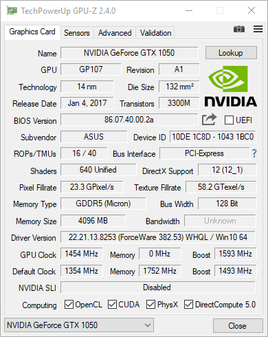 | GPU | Nvidia GeForce GTX 1060 | Nvidia GeForce GTX 1060 | Nvidia GeForce GTX 1050 | Nvidia GeForce GTX 1050Ti | Nvidia GeForce GTX 1050 | Nvidia GeForce GTX 1060 |