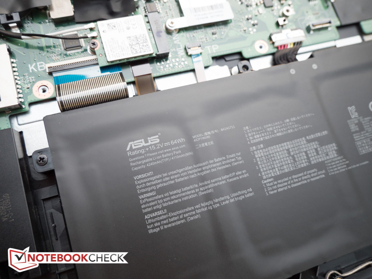 Dank Optimus wird dynamisch und je nach Bedarf zwischen der dedizierten und integrierten GPU hin- und hergeschaltet, so dass Letztere für wenig anspruchsvolle Aufgaben verwendet wird. Dank dem verhältnismäßig großen 64-Wh-Akku und einem moderaten Energiehunger fallen die Laufzeiten für ein 17-Zoll-Notebook ausgesprochen gut aus: Im praxisnahen WLAN-Test hielt das GL703 über 7 h durch. Lässt man also entsprechende Vorsicht walten, sollte der Akku problemlos einen vollen Arbeitstag überstehen, solange anspruchsvolle und rechenintensive Anwendungen wie Spiele gemieden werden.
