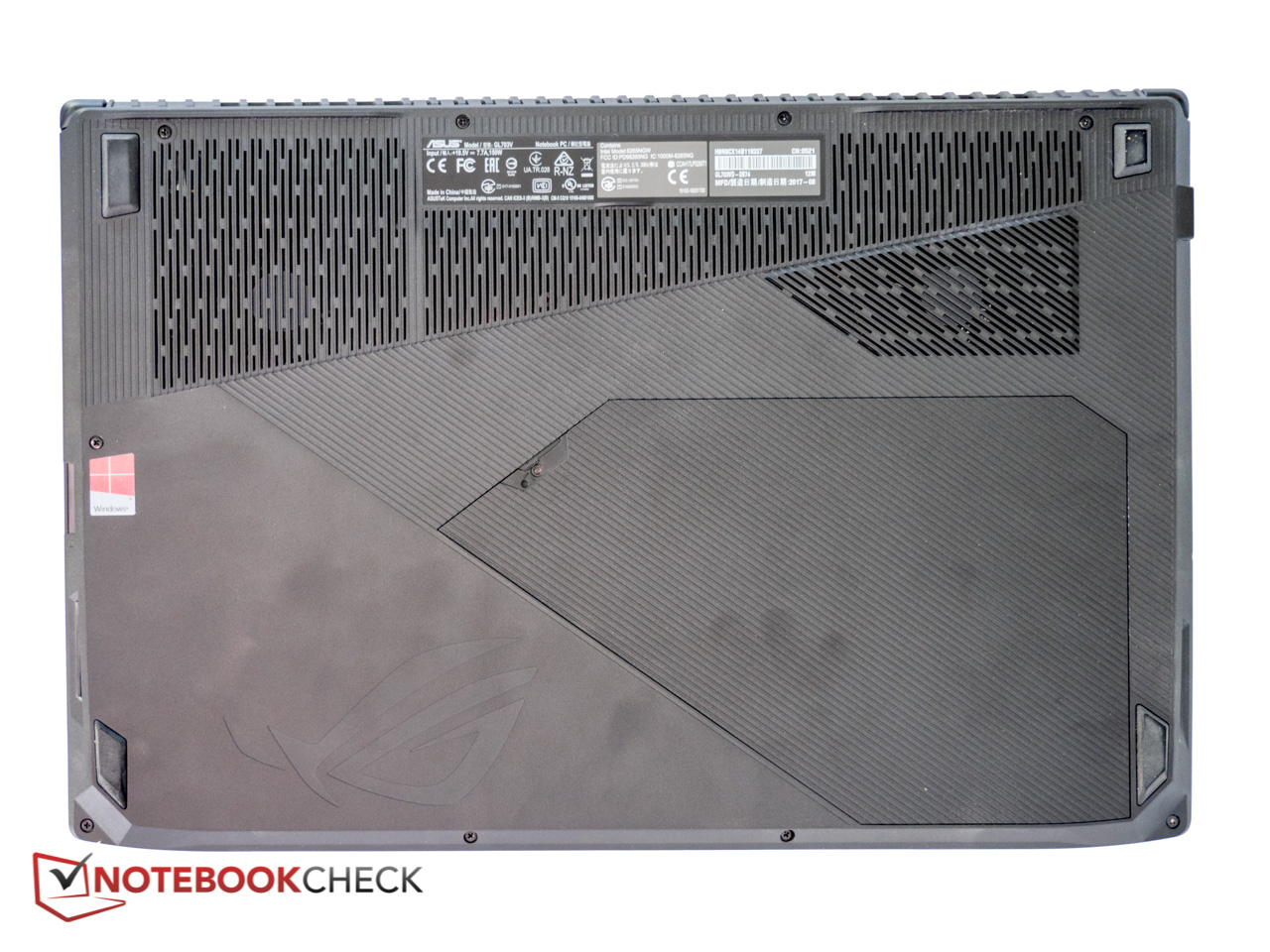 In puncto Größe hält sich das Strix GL703 vornehm zurück und ist kleiner als die meisten 17-Zoll-Gaming-Notebooks. Am ehesten lässt es sich mit dem HP Omen 17 vergleichen. Mit nur 24 mm Dicke ist es zudem sehr dünn und wird nur vom 20 mm dünnen MSI GS73 geschlagen. Letzteres hat auch beim Gewicht die Nase vorne und kann sich mit gerade mal 2,4 kg deutlich von der gesamten Konkurrenz absetzen, die sämtlich im Bereich zwischen 2,9 und 3,1 kg liegt. Zieht man beim Gewicht hingegen auch das Netzteil hinzu, liegt unser Testgerät um stolze 500 g unterhalb des Acer Aspire V17 Nitro. Zwar spielt Mobilität bei der Wahl eines 17-Zoll-Notebooks schon per Definition eine untergeordnete Rolle, es ist jedoch beruhigend zu wissen, dass das GL703 nicht nur in der Theorie portabel ist.