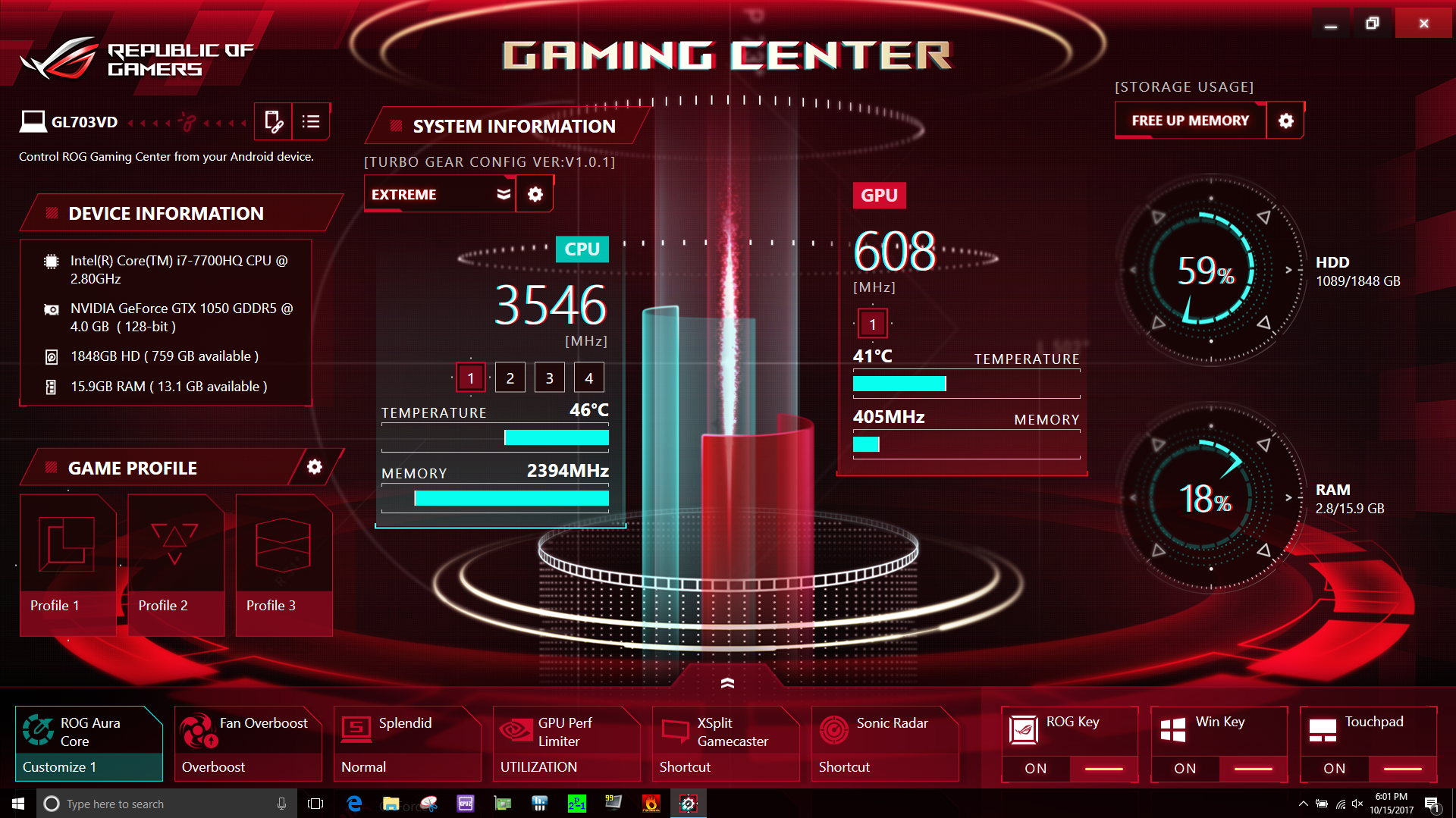 Asus plant spezielle SCAR- und Hero Editionen zu veröffentlichen, die mit schnellerem 120-Hz-Display und der kräftigeren GeForce GTX 1060 ausgestattet und bei der Optik an die speziellen Bedürfnisse und Wünsche der jeweiligen Zielgruppe angepasst sein werden. Unser “Standard”-Gerät von CUKUSA ist hingegen ausgestattet mit Core i7-7700HQ, 16 GB DDR4-RAM, einer 256-GB-M.2-SATA-III-SSD sowie einer konventionellen 1-TB-Festplatte. Verkaufspreis dieses Modells liegt in den USA bei 1.300 US-Dollar zzgl. Mehrwertsteuer, in Deutschland ist ein ähnlich ausgestattetes Gerät mit 8 statt 16 GB RAM für knapp 1.400 Euro erhältlich.
