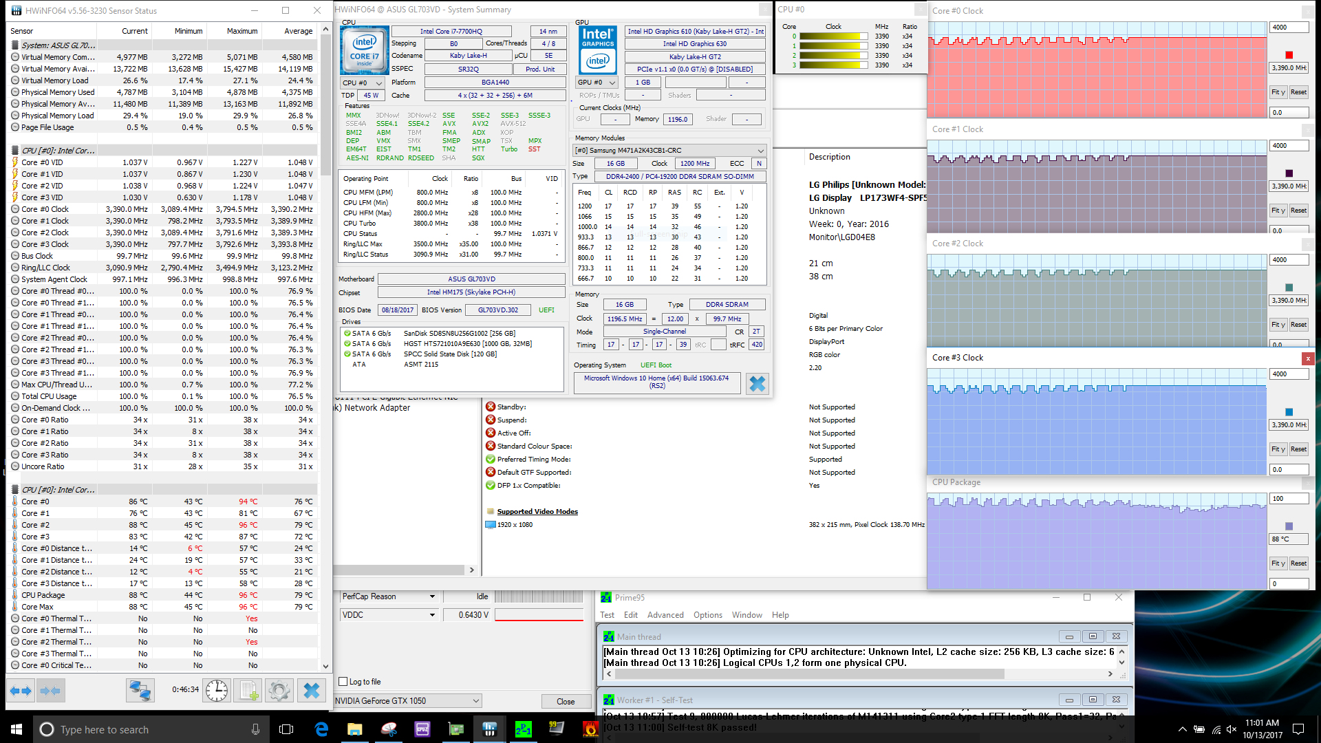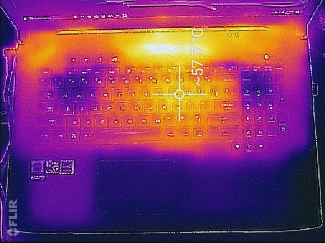 Andererseits gibt es jedoch auch ein paar drastische Nachteile: Für ein Notebook mit einer Einsteiger-GPU ist das GL703VD zumindest bei Maximallast schlichtweg zu laut und zu heiß: Mit 53 dB(A) und Oberflächentemperaturen von fast 70 °C kann es hier problemlos mit Gaming-Monstern mit Desktop-CPU und High-End-GPU mithalten. Bei geringer Last (Gaming) sind die Temperaturen allerdings erträglicher. Wir können nur hoffen, dass Asus für die kommenden SCAR- und HERO Sonderausgaben mit GTX 1060 das Kühlkonzept grundlegend überarbeitet.