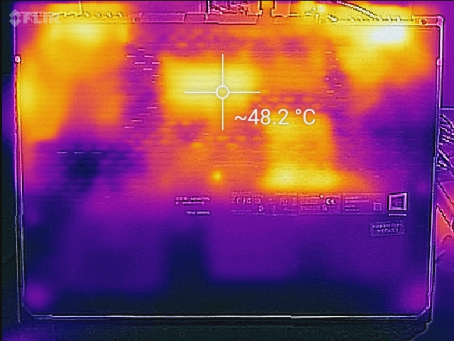 (-) Auf der Unterseite messen wir eine maximalen Wert von 52 °C (im Vergleich zum Durchschnitt von 43.3 °C).