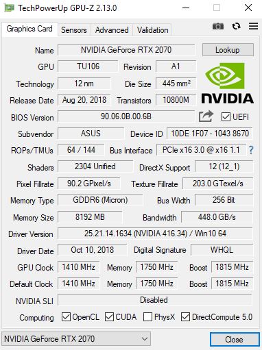 | Treiber | Nvidia 416.34 |