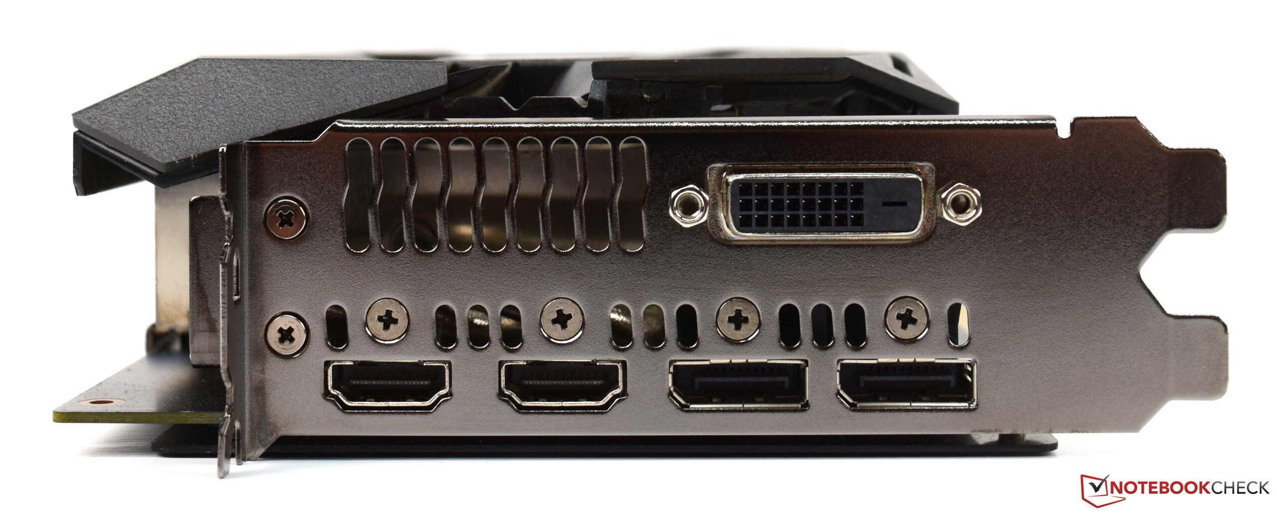 Für externe Geräte bietet die Asus ROG Strix Radeon RX 580 einen DVI-D Anschluss sowie zwei HDMI-2.0b-Schnittstellen und zwei DisplayPort-1.4-Anschlüsse. Intern verlangt die Grafikkarte nach einem 8-Pin-Stromanschluss.