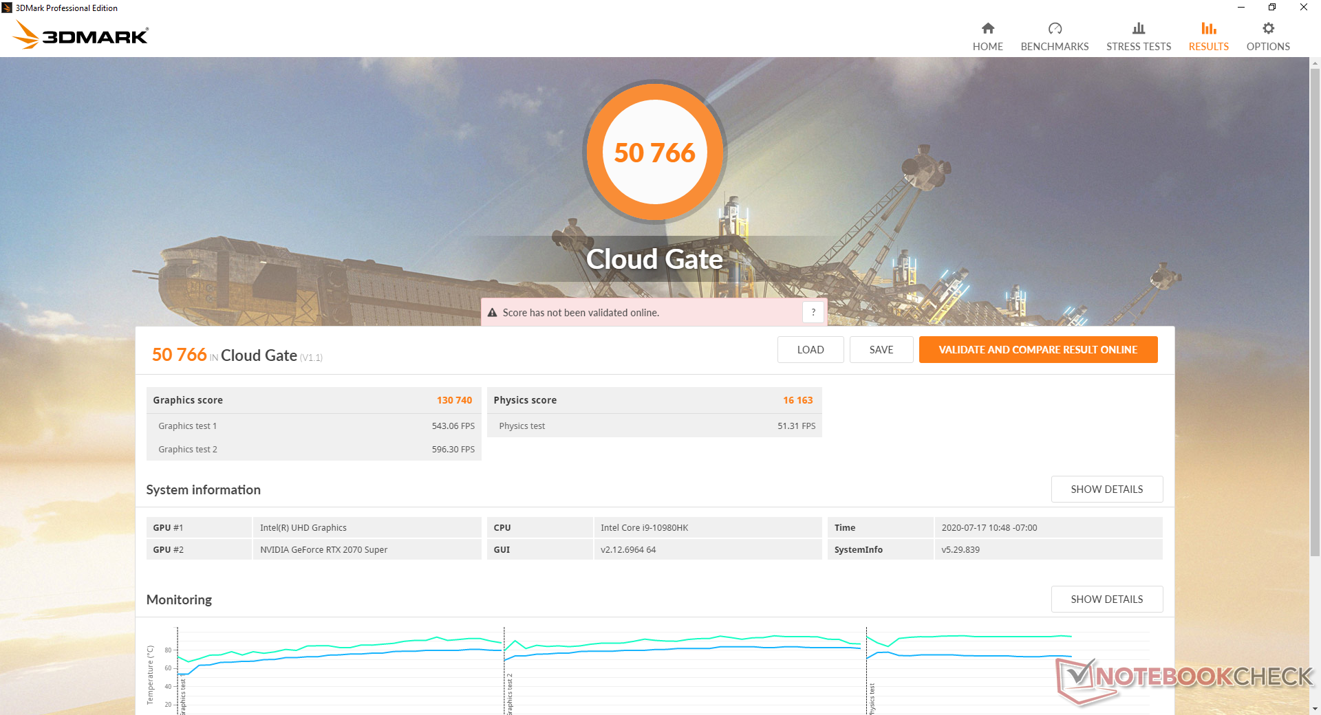 Als insgesamt achtes mit Intels Core i9-10980HK ausgestattetes Laptop in unserer Datenbank lag die Performance genau dort, wo wir sie erwartet hätten. Das Turbo-Boost-Potenzial war allerdings nicht ganz perfekt. Während unserer Cinebench-R15-Multi-Thread-Schleife kam es zu einer Reduzierung der Performance um etwa 7 Prozent. Insgesamt lag die Leistung nur ein paar wenige Prozentpunkte über der des günstigeren Core i7-10875H Octa-Core-Prozessors und rund 25 % vor dem Core i7-10750H Hexa-Core. Folglich raten wir eher zum Core i7-10875H anstatt des Core-i9-Modells.