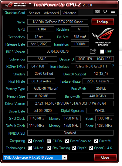 Beim Schritt vom Performance zum Turbo Mode erhöhen sich GPU- und Speichertakt nur marginal, von 1.590 auf 1.650 MHz (GPU) und von 1.750 auf 1.788 MHz (Speicher). Gleichzeitig drehen die Lüfter von ca. 5.600 RPM auf stolze 6.500 RPM auf.