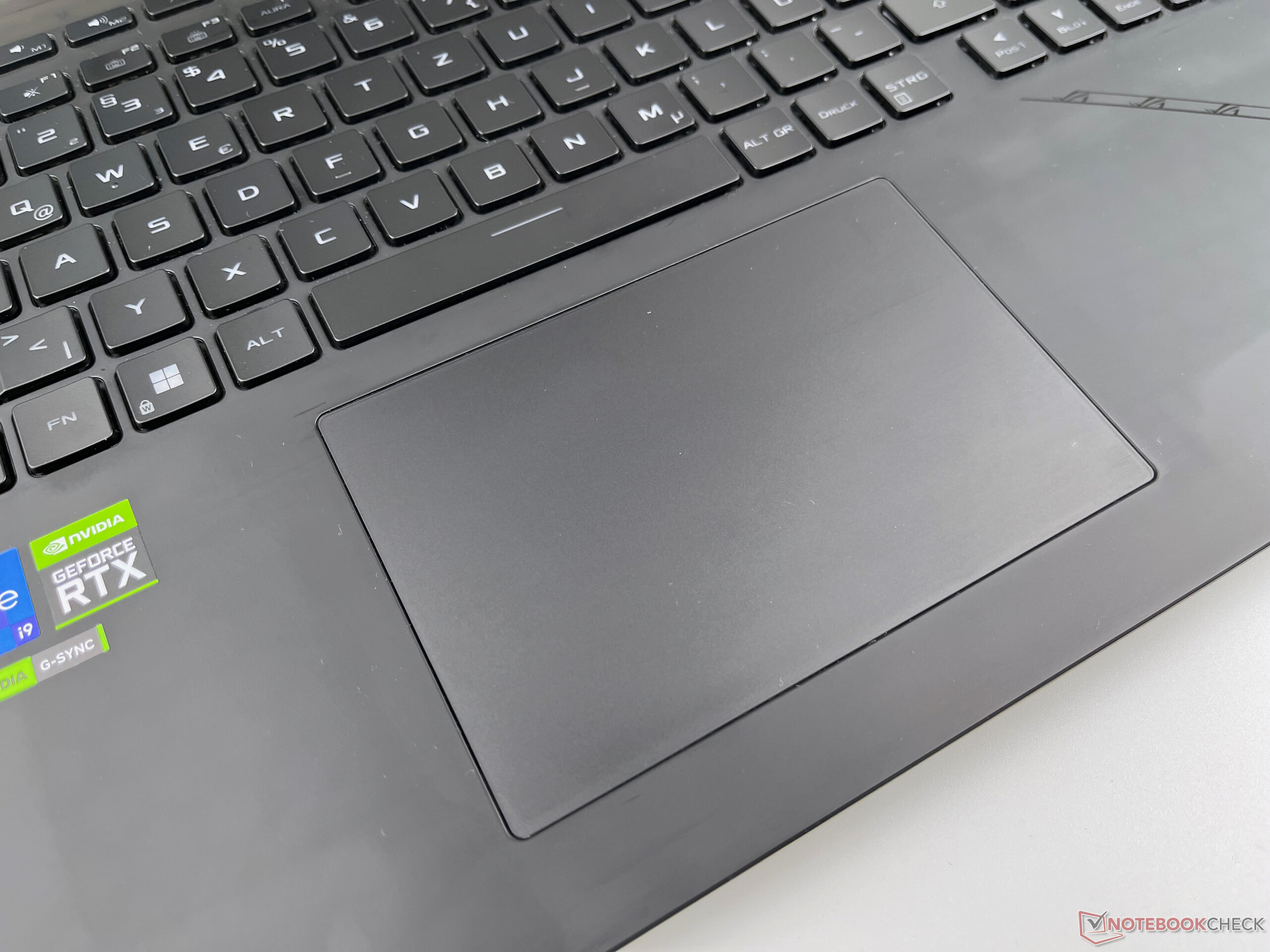 Das große Touchpad nutzt eine Oberfläche aus Glas und bietet hervorragende Gleiteigenschaften. Multitouch funktionierte im Test einwandfrei und die unteren 4/5 der Fläche sind auch angenehm klickbar. Jedoch wird der Klick im rechten unteren Eck sehr oft als "rechte Maustaste" erkannt und kann daher zu Fehleingaben führen.