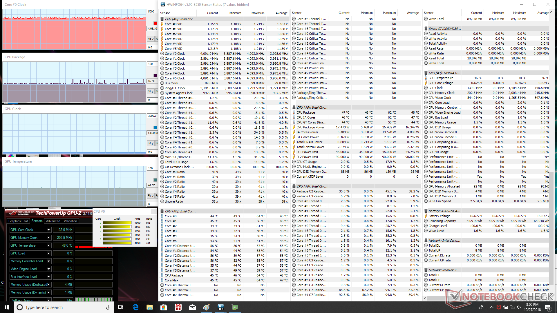 | Asus GL704GM-DH74 i7-8750H, GeForce GTX 1060 Mobile, 66 Wh | Asus Strix GL703GM-DS74 i7-8750H, GeForce GTX 1060 Mobile, 74 Wh | MSI GS73 Stealth 8RF-011 i7-8750H, GeForce GTX 1070 Max-Q, 51 Wh | HP Omen 17t-3AW55AV_1 i7-8750H, GeForce GTX 1070 Mobile, 86 Wh | Acer Predator Helios 500 PH517-51-93LS i9-8950HK, GeForce GTX 1070 Mobile, 74 Wh | Aorus X7 DT v8 i7-8850H, GeForce GTX 1080 Mobile, 94.24 Wh | |