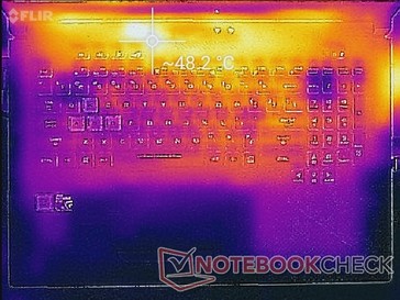 (-) Die maximale Temperatur auf der Oberseite ist 48 °C. Im Vergleich liegt der Klassendurchschnitt bei 40.4 °C (von 21.2 bis 68.8 °C für die Klasse Gaming).