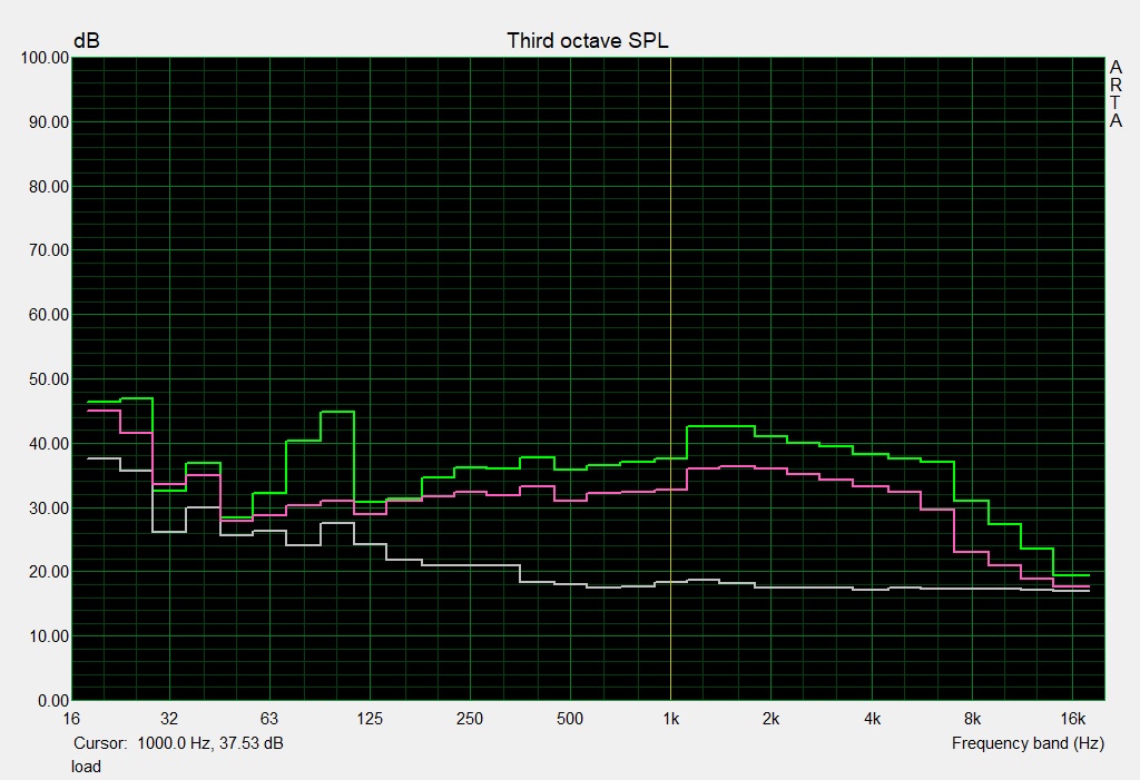 | Idle avg * (dB) | 32 | 31.8 1% | 30.7 4% | 32.1 -0% | 31.1 3% | 34 -6% |