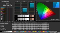 Bereits im Werkszustand gehen die Abweichungen der Graustufen und der Farben für einen Gaming-Laptop vollkommen in Ordnung. Es gibt keinen störenden Farbstich und es eine Kalibrierung ist nicht nötig. Bei den Graustufen ist sogar noch eine Verbesserung möglich, doch die Ausreißer bei den Farben können wir nicht korrigieren. Der sRGB-Farbraum wird nicht vollständig abgedeckt, doch beim Spielen ist das kein Problem.