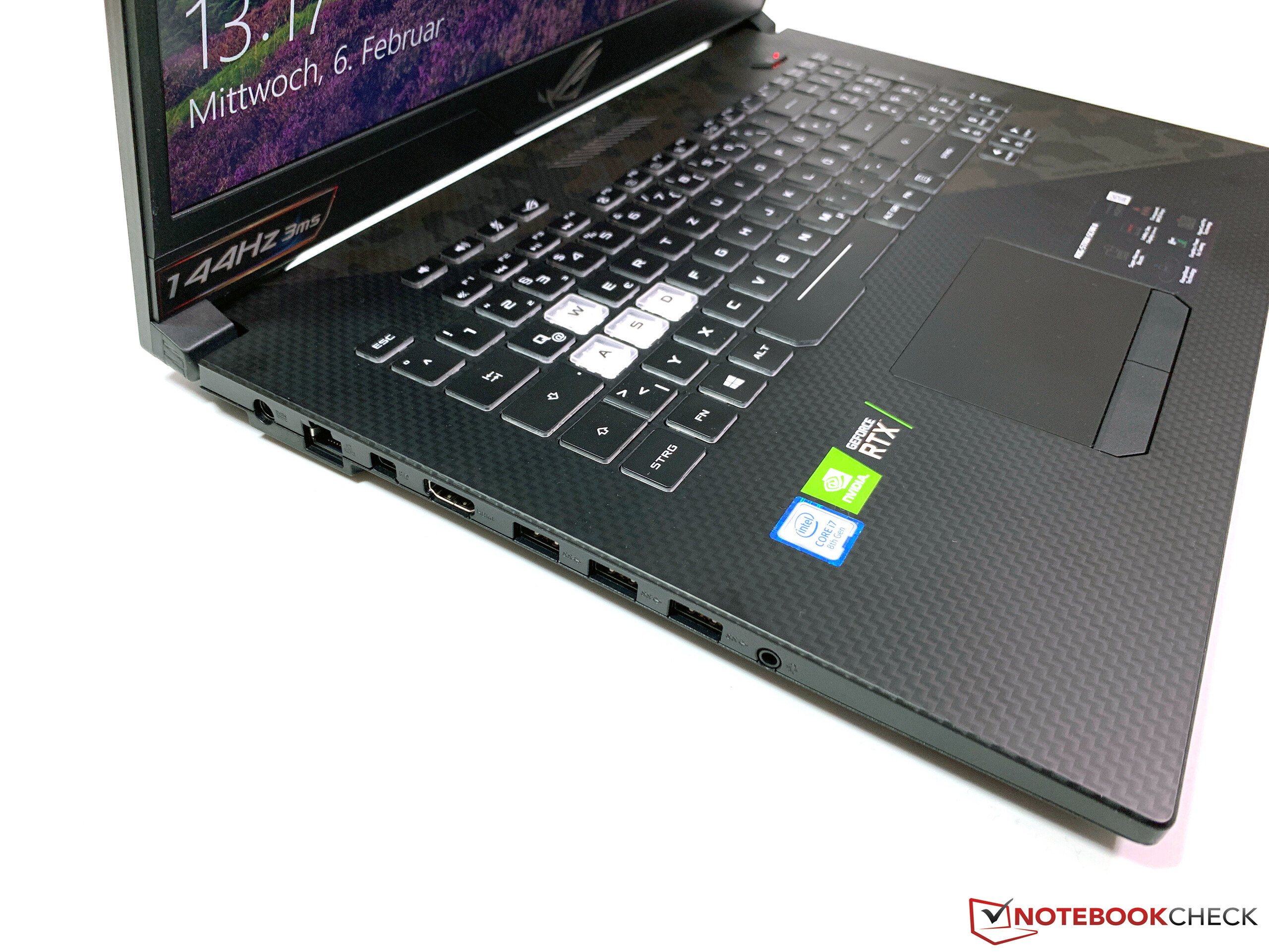 Uns interessiert bei dem neuen Asus GL704GW natürlich vor allem die Leistung der frischen RTX-GPU und deren Auswirkungen auf die Emissionen. Da sich am Gehäuse selbst aber nichts verändert hat, werden wir nicht noch einmal alle Aspekte des Gerätes untersuchen. Für weitere Informationen zu der Verarbeitung, den Anschlüssen und den Eingabegeräten verweisen wir auf unseren ausführlichen Testbericht des GL704GM.