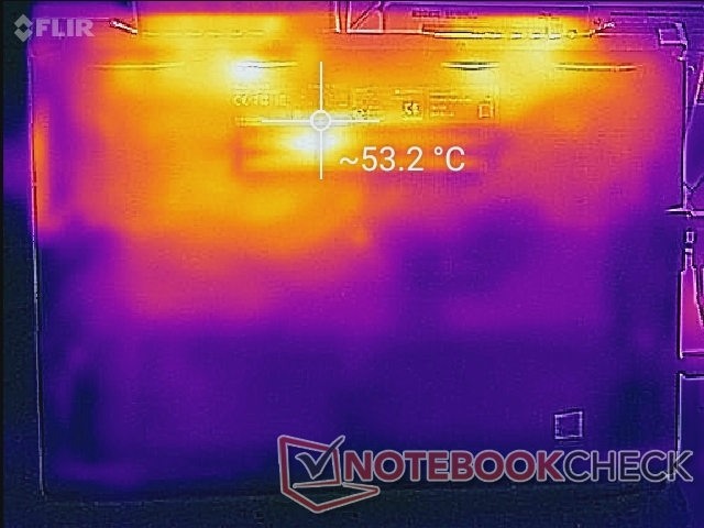 (-) Auf der Unterseite messen wir eine maximalen Wert von 58.2 °C (im Vergleich zum Durchschnitt von 43.3 °C).