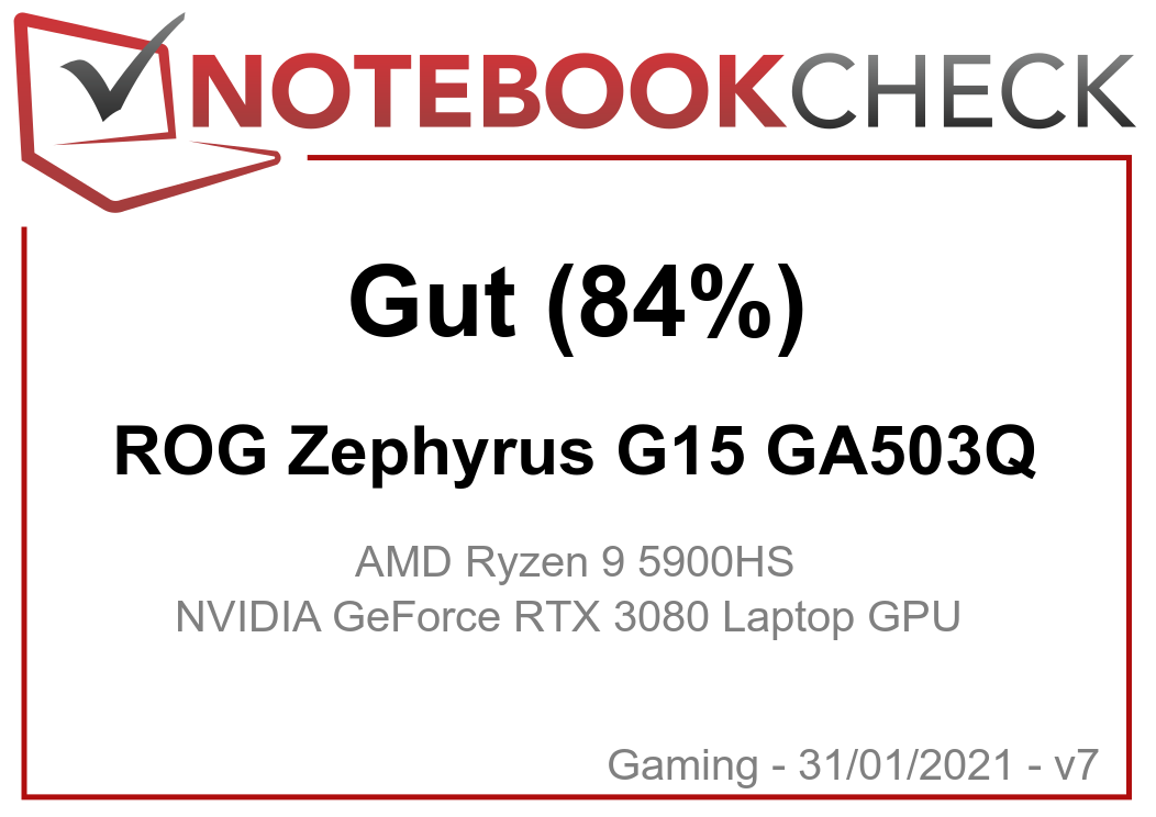 | 83.8 % v7 (old) | 01 / 2021 | Asus ROG Zephyrus G15 GA503Q R9 5900HS, GeForce RTX 3080 Laptop GPU | 2 kg | 20 mm | 15.60" | 2560x1440 | |