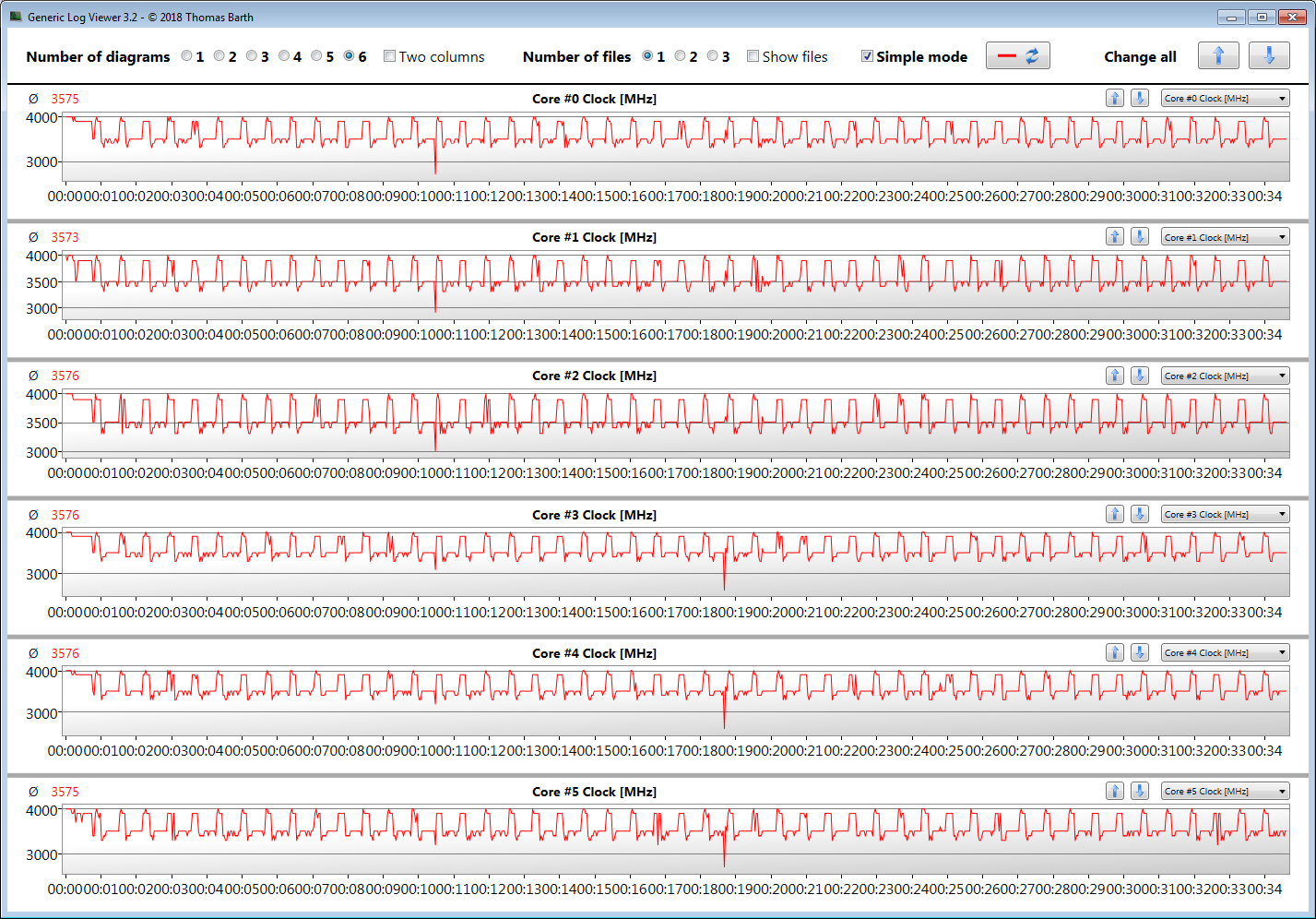 Wir haben die Cinebench-R15-Schleife auch bei aktiviertem Turbo-Modus durchlaufen lassen. Die Resultate fallen durchweg etwas höher aus, da der CPU-Turbo mit höheren Taktraten arbeitet.