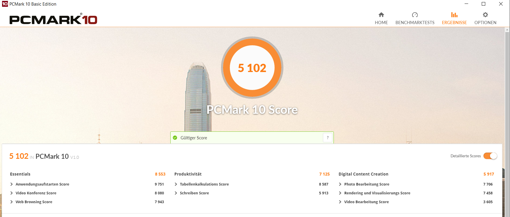 Die Kombination aus Core-i7-8750H-Prozessor, im Dual-Channel-Modus laufenden Arbeitsspeicher und NVMe-SSD sorgt für ein rund und flüssig laufendes System. Problemen sind wir nicht begegnet. Der Sechskernprozessor bietet genügend Leistungsreserven für die nächsten Jahre. Der dedizierte Grafikkern ermöglicht die Nutzung von Computerspielen. Dazu gesellen sich sehr gute Resultate in den PCMark-Benchmarks.