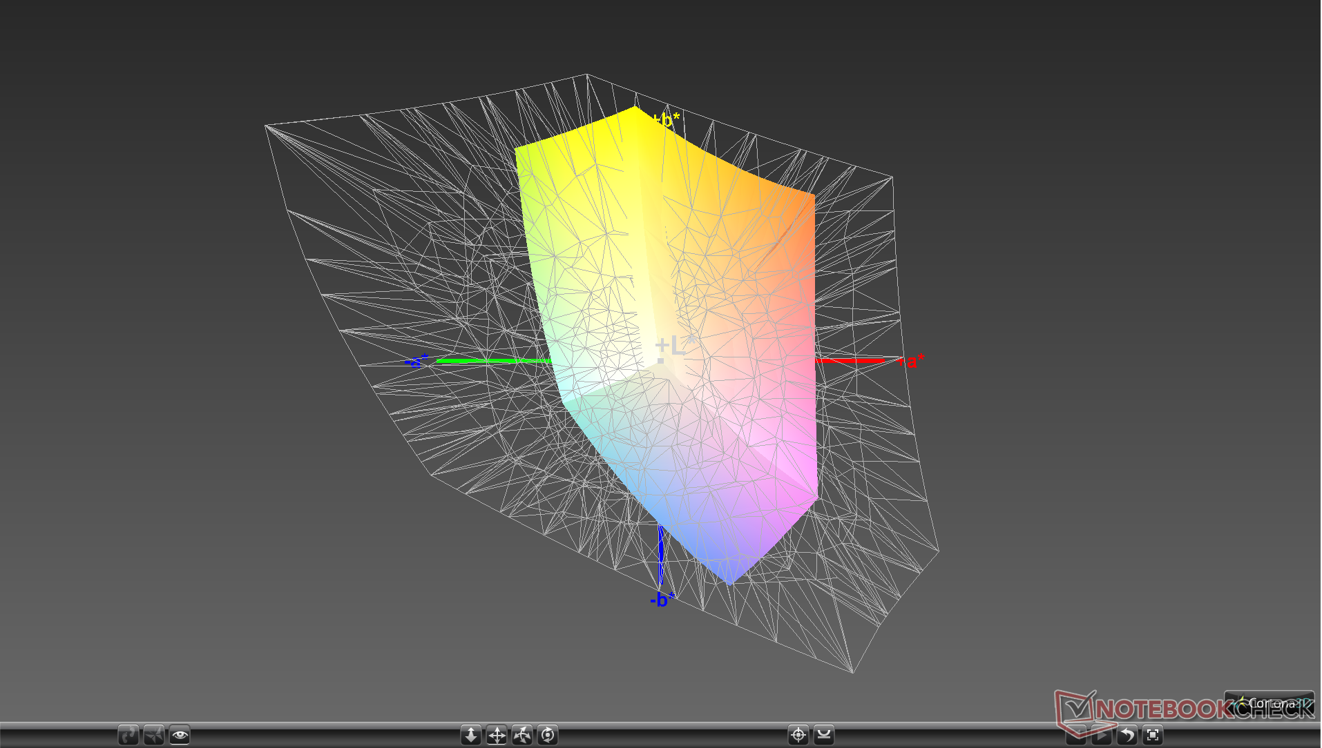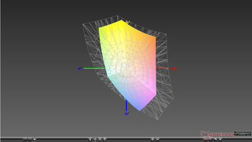 Die Farbraumabdeckung beträgt nur 60 Prozent des sRGB-Standards, was zu einem billiges Panel passt. Die meisten etablierten Gaming-Laptops erreichen eine sRGB-Farbraumabdeckung von 90 Prozent oder mehr und haben daher eine tiefere und genauere Farbdarstellung. Wenn man das Notebook jedoch für Gaming-Zwecke nutzt, beeinflusst der eingeschränkte Farbraum das Erlebnis nicht maßgeblich.