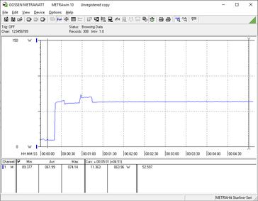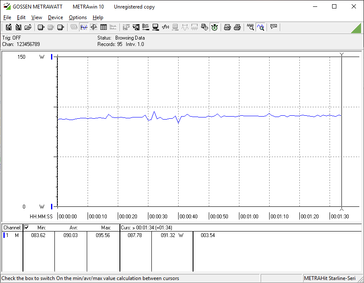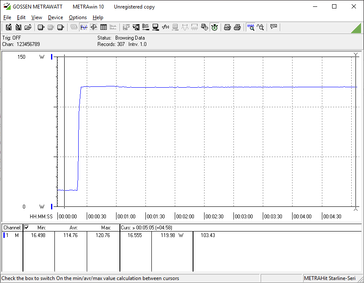 Die maximale Energieaufnahme, die dem mittelgroßen (~16 x 7,5 x 2,7 cm) 120-W-Netzteil bei der gleichzeitigen Ausführung von Prime95 und FurMark abverlangt wurde, lag bei 120,7 W. Der Laptop wird also bei 100-prozentiger CPU- und GPU-Auslastung nur sehr langsam geladen. Bei diesem System wäre ein größer dimensioniertes 150-W-Netzteil angemessener gewesen.