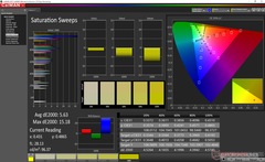 Weitere Messungen mit einem X-Rite-Farbmessgerät offenbaren eine insgesamt genaue Darstellung der Graustufen vor jeglicher Kalibrierung. Während die meisten Budget-Laptops mit einer zu kühlen Farbtemperatur einen schlechten ersten Eindruck hinterlassen, folgt das FX505 diesem Trend glücklicherweise nicht. Trotzdem werden die Farben bei höheren Sättigungsstufen aufgrund des oben genannten kleinen Farbraums ungenauer. Vor allem Blau wird messbar weniger präzise dargestellt als andere Farben und geht eher in Richtung Blau-Violett.