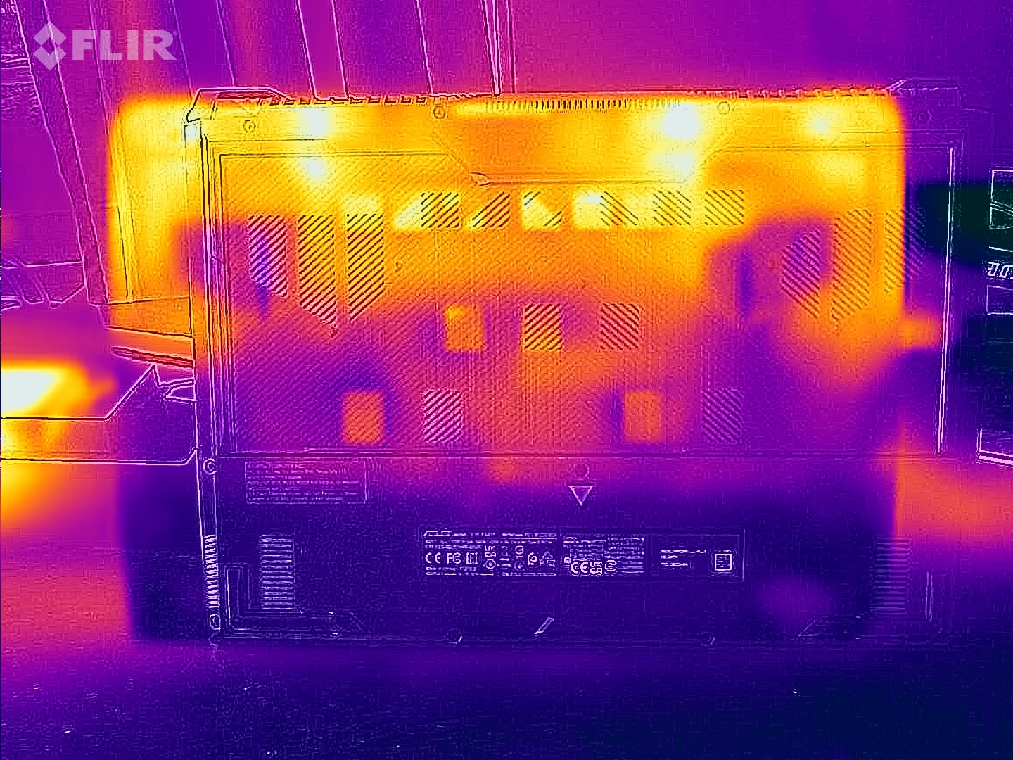 (-) Auf der Unterseite messen wir eine maximalen Wert von 47 °C (im Vergleich zum Durchschnitt von 43.3 °C).