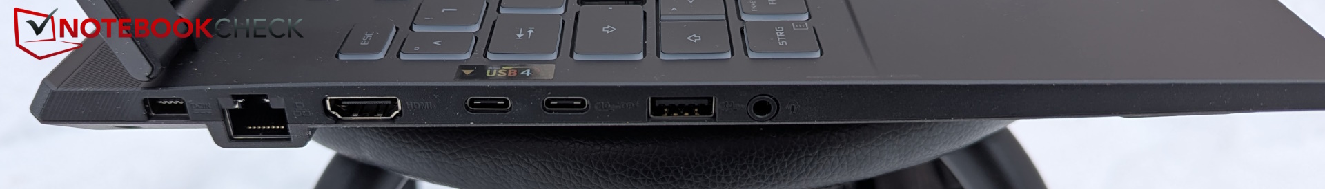 Nahezu sämtliche Anschlüsse wandern auf die linke Seite, rechts sitzt nur noch ein einziger USB-A-Slot. Dadurch kann es auf der linken Seite schon mal etwas eng werden, aber lediglich der USB-A-Slot und die Kopfhörer-Klinke weiter vorne könnten sich bei größeren Steckern in die Quere kommen.